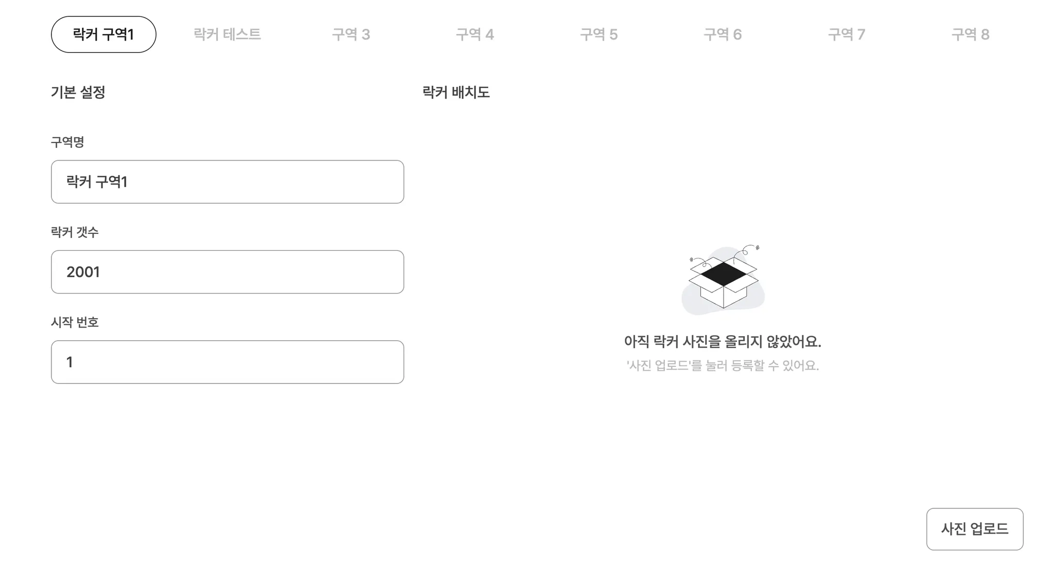 락커 구역은 최대 8개까지 설정할 수 있어요.