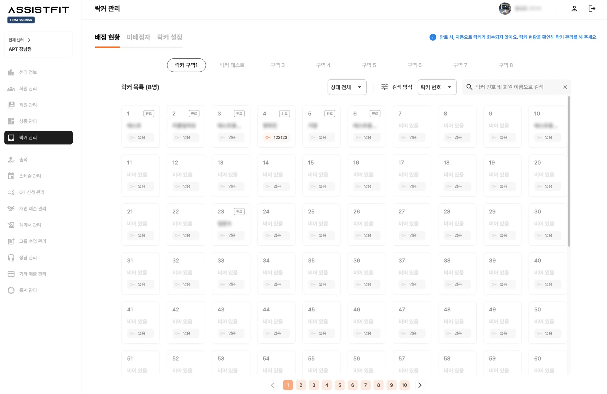 락커가 배정되면, 배정된 번호에 회원의 이름이 표시돼요.