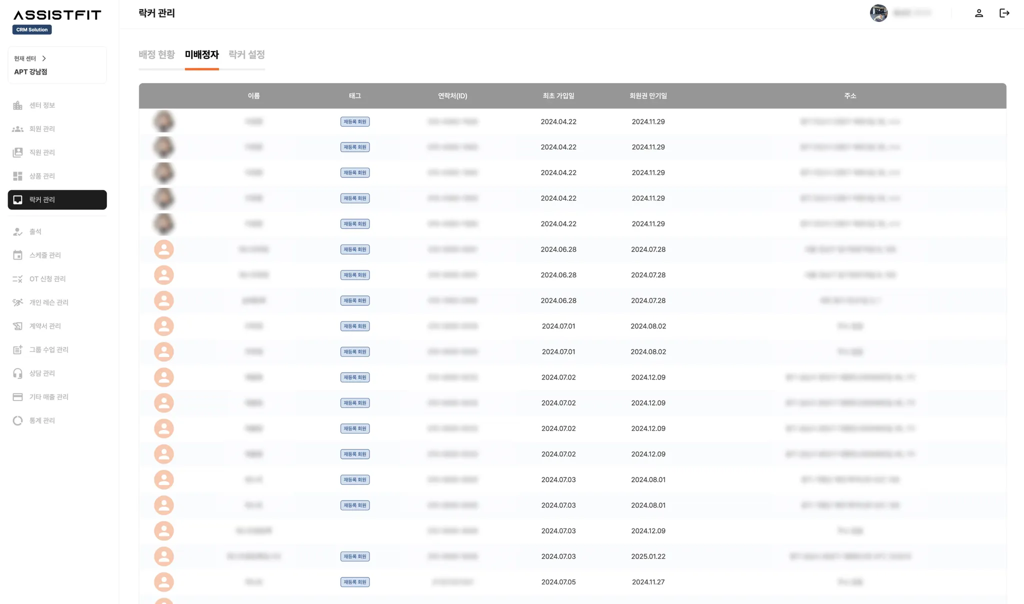 락커 번호를 배정하지 않은 회원은 미배정자 페이지에서 관리할 수 있어요.
