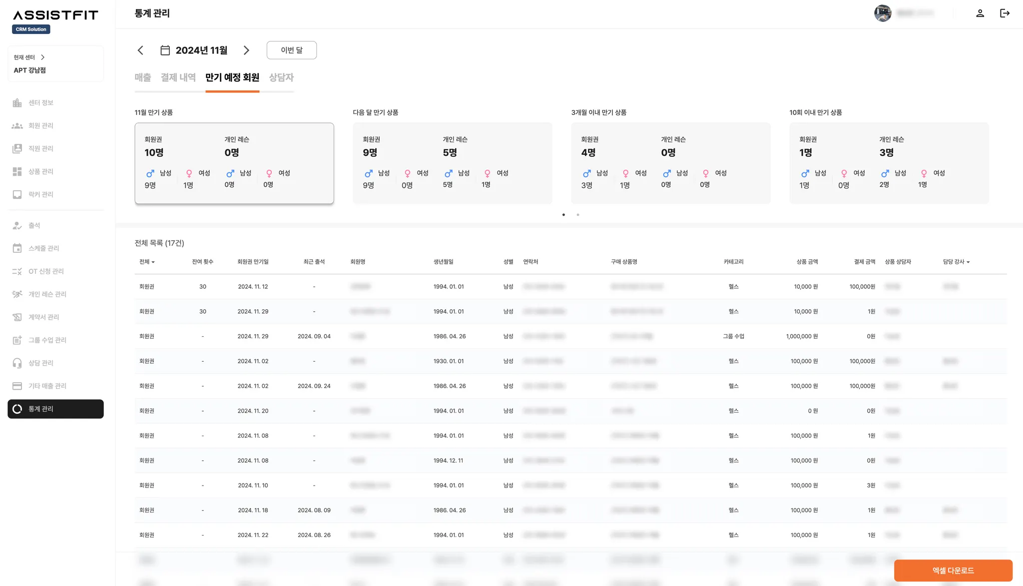 만기 예정 회원