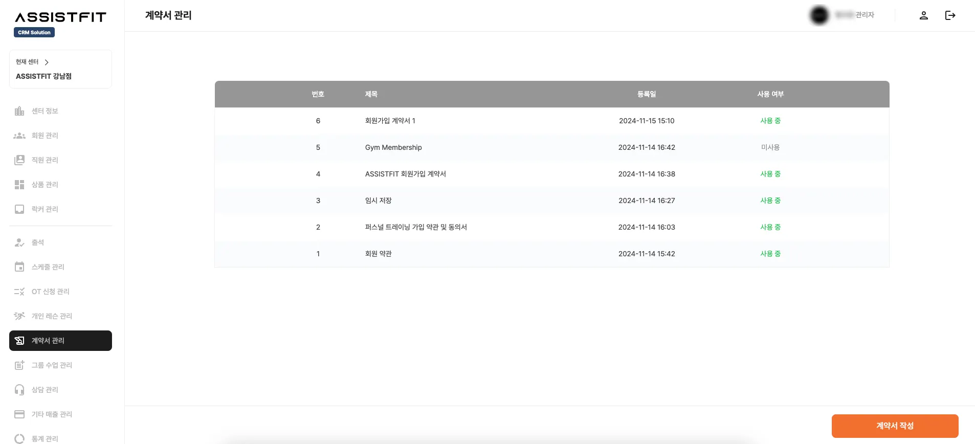 계약서를 회원에게 발송을 한 상태라면 사용 중 상태가 되고, 작성만 하고 회원에게 발송하기 전이라면 미사용 상태로 노출돼요.