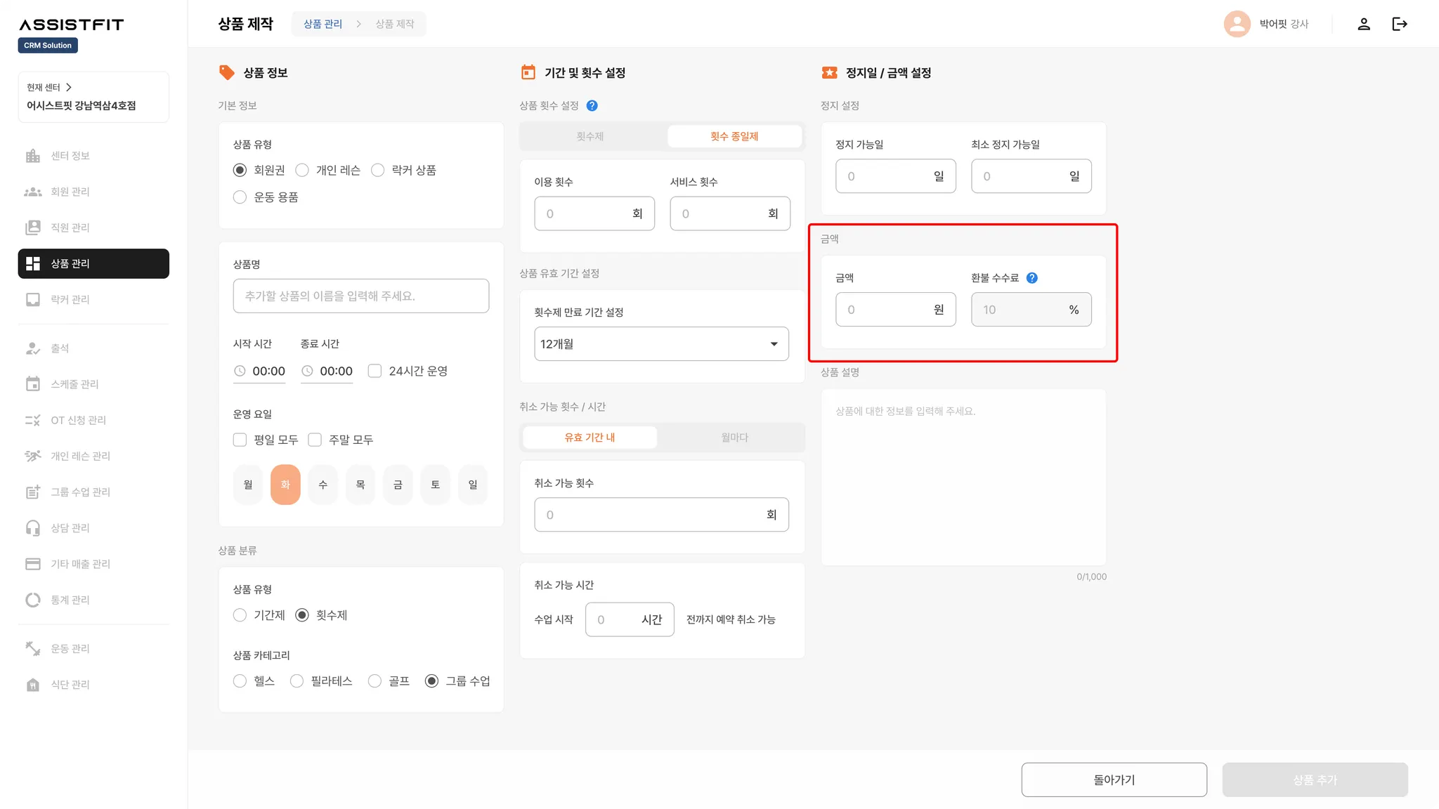 ์ํ์ ํ๋งค ๊ธ์ก์ ์ค์ ํด ์ฃผ์ธ์.