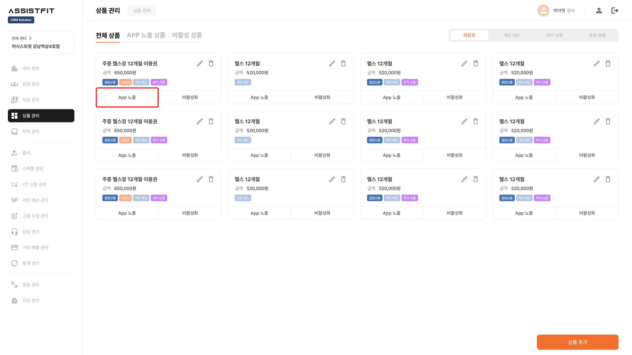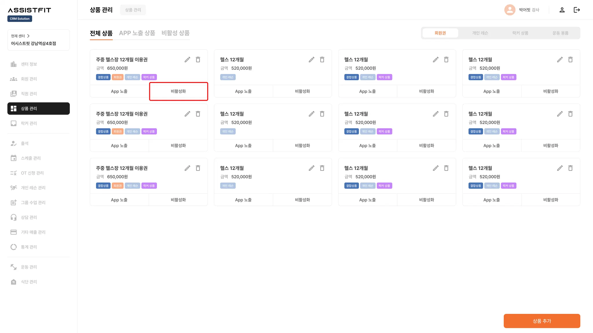 상품을 활성화하거나, 비활성화할 수 있어요.