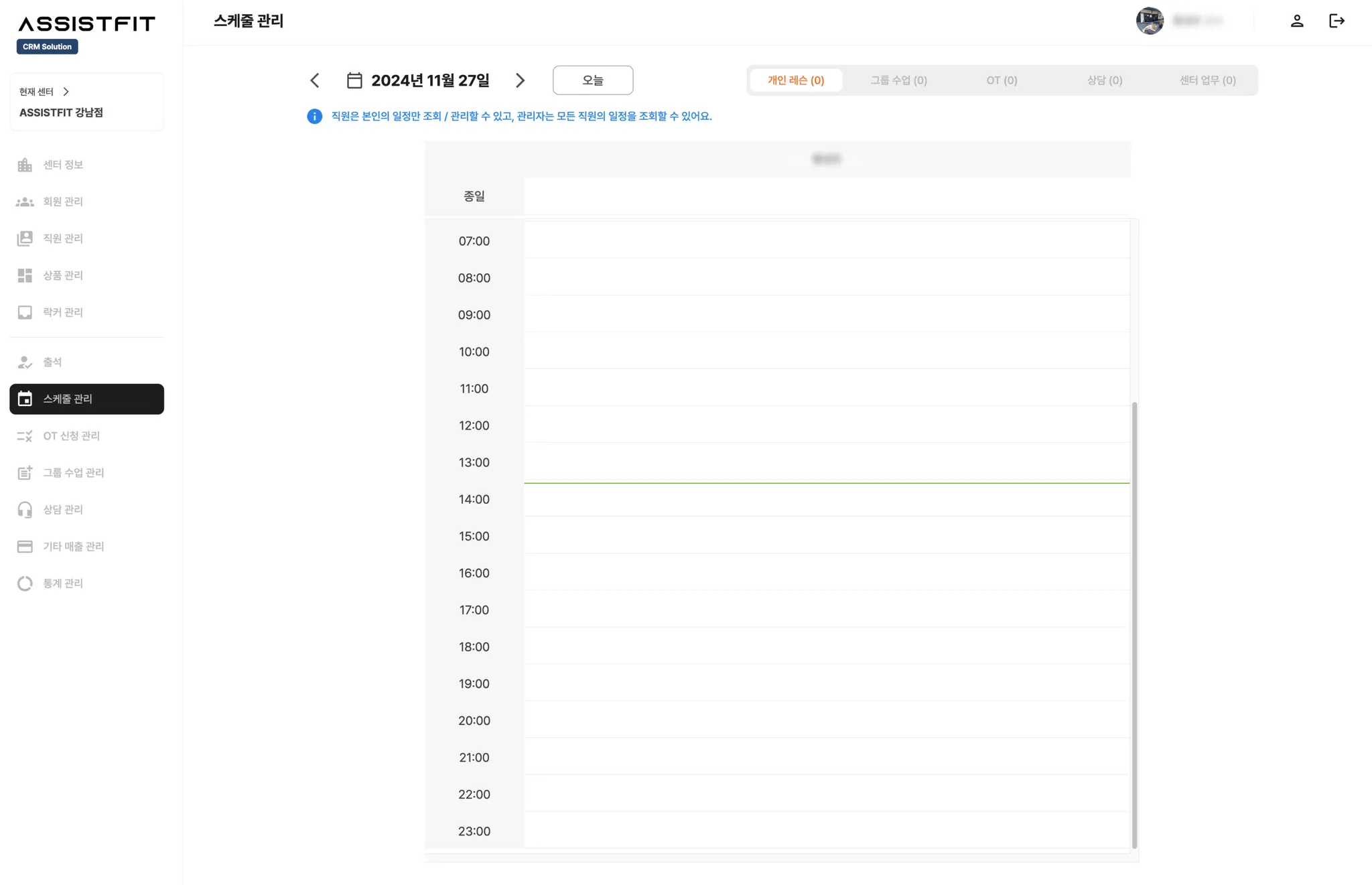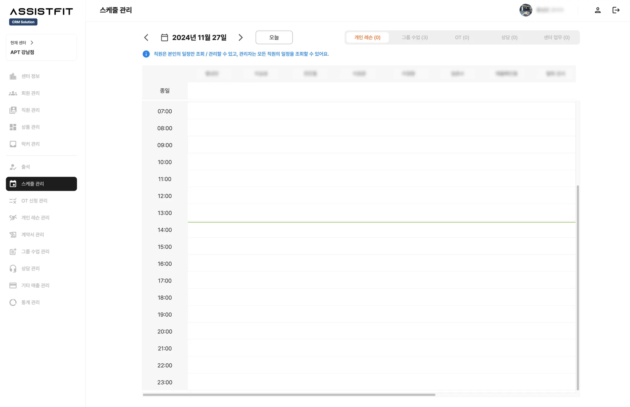 관리자는 소속된 강사(직원)들의 모든 스케줄을 조회할 수 있어요.