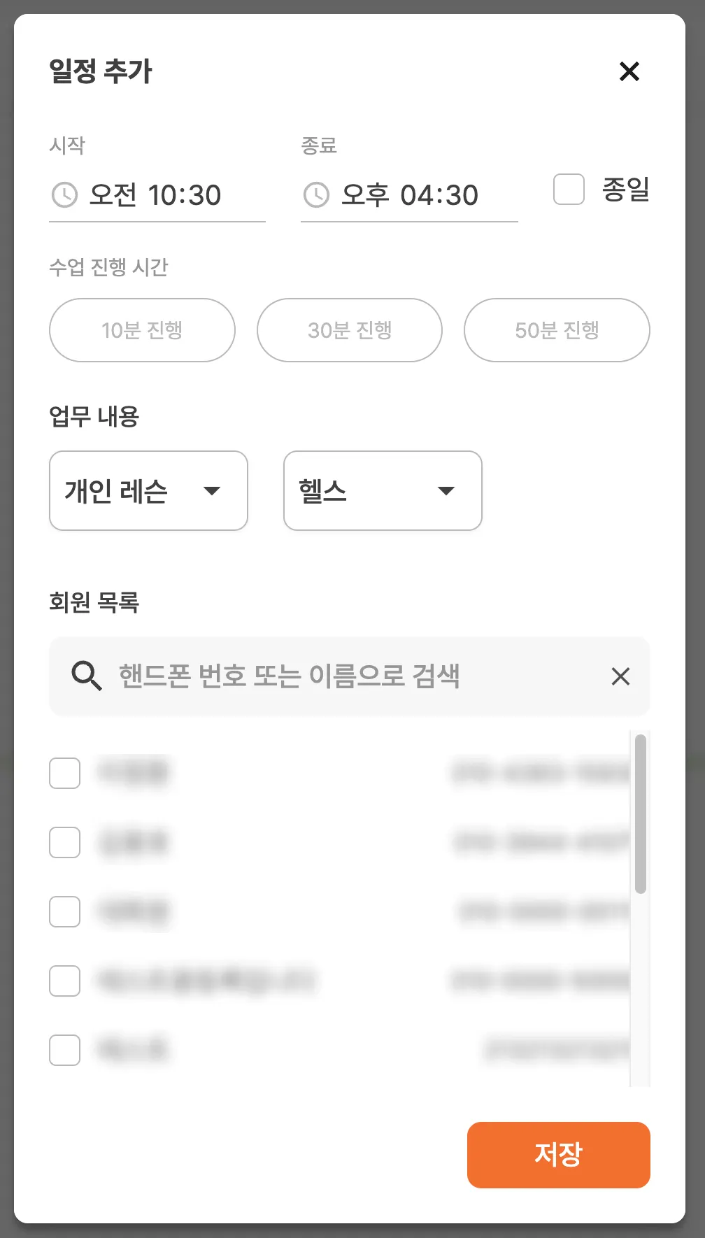 회원의 개인 레슨 스케줄을 잡아야할 때 사용해 주세요.