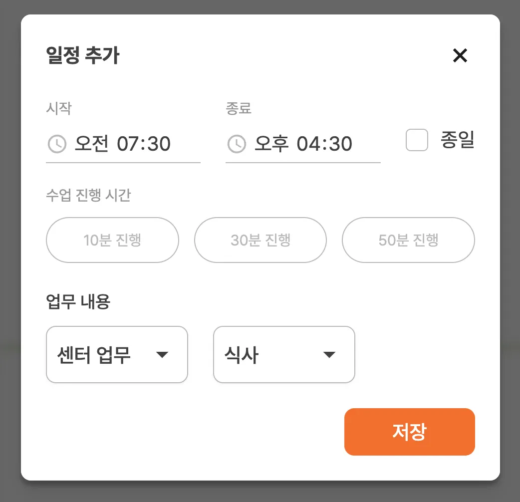 서비스 수업, 센터 업무 등 기타 업무를 진행해야 할 때 사용해 주세요.