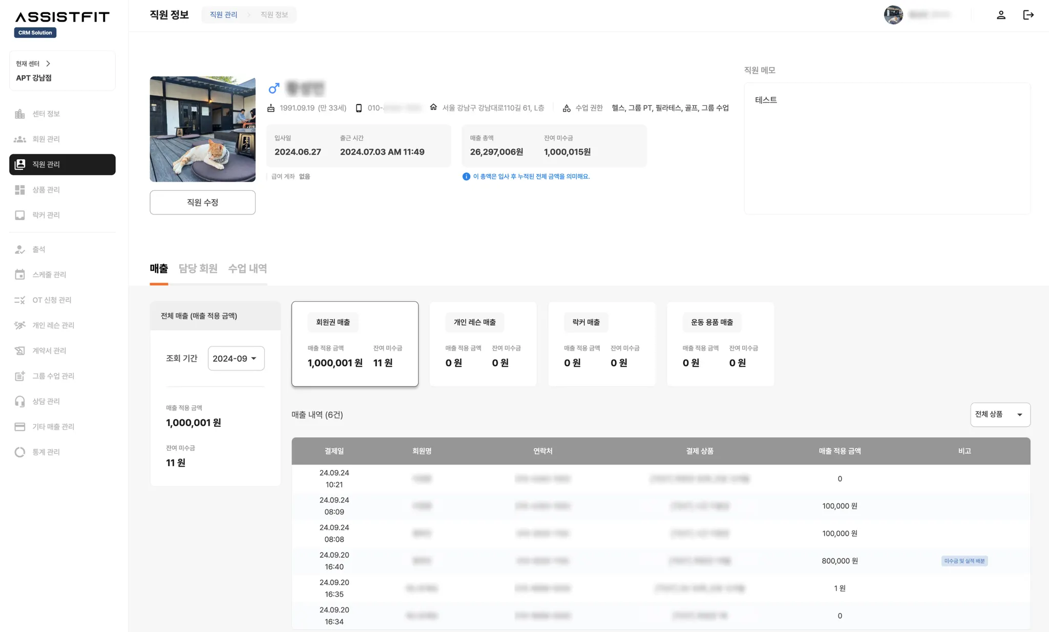 직원 매출 현황을 확인할 수 있어요.