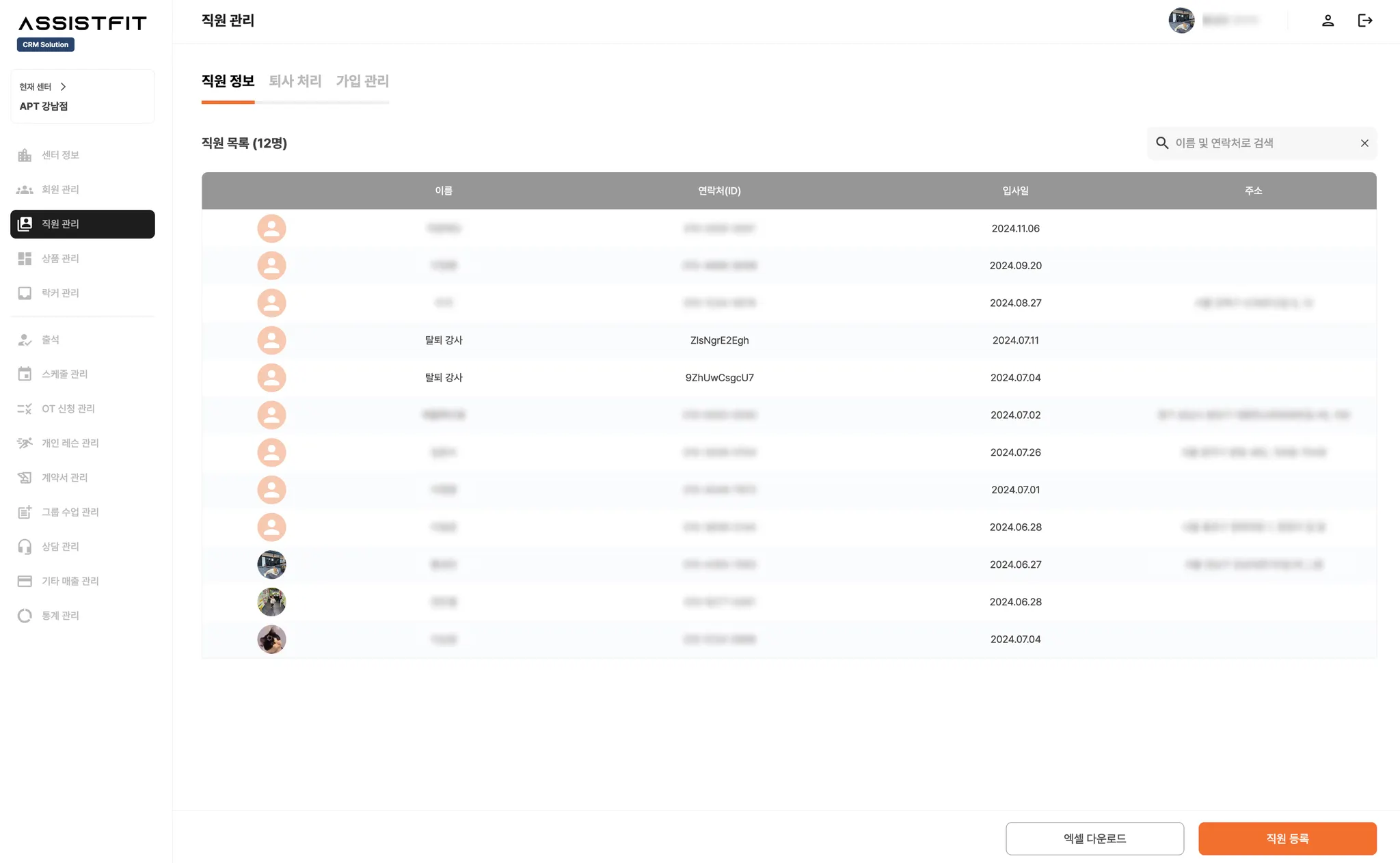 엑셀을 통해 직원이 담당하고 있는 회원의 정보를 확인할 수 있어요.