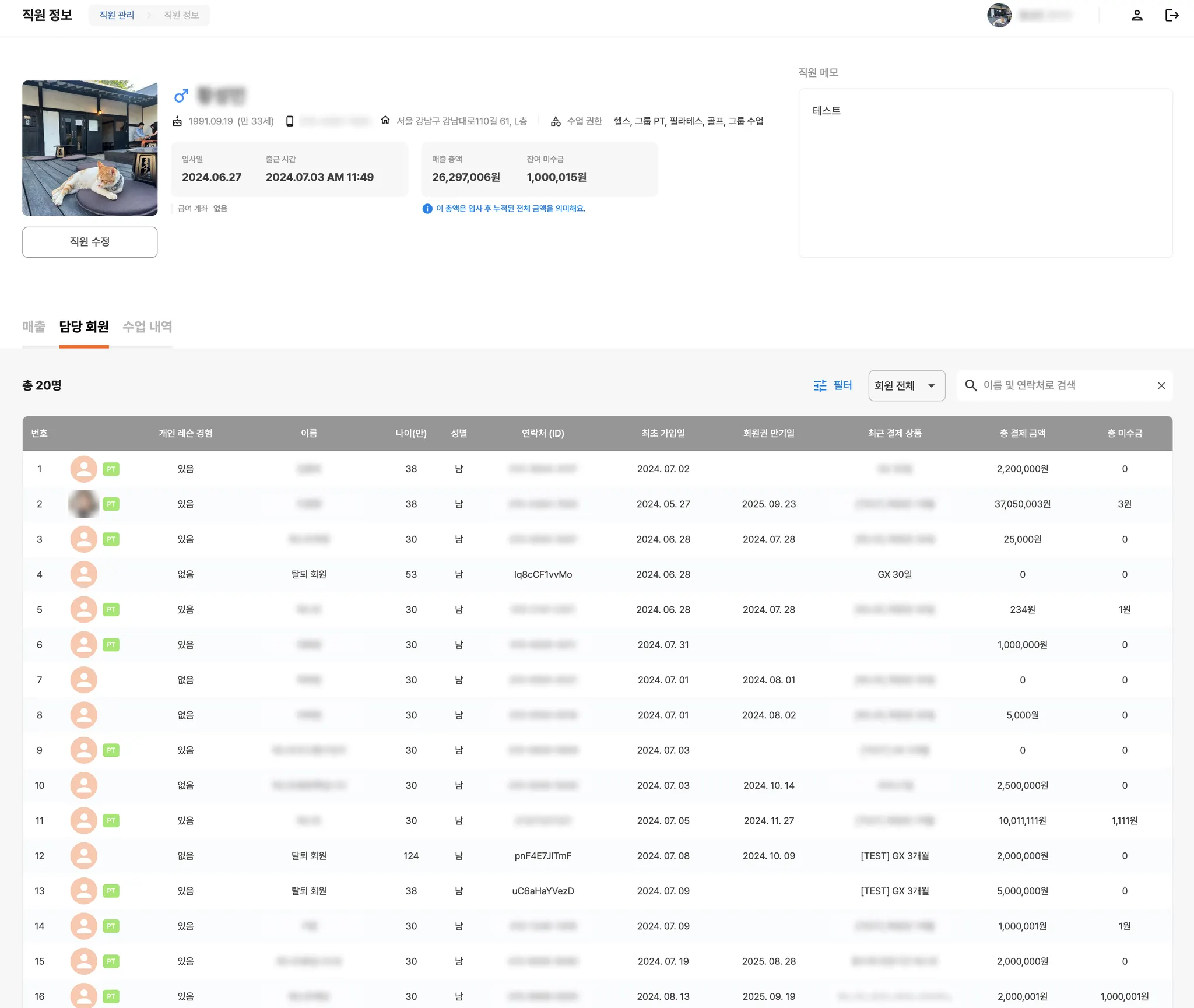 직원이 담당하고 있는 회원을 확인할 수 있어요.