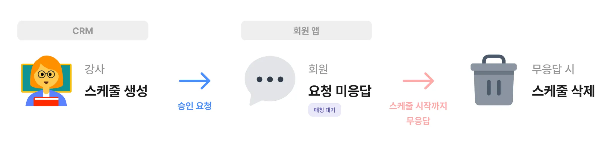 회원이 스케줄이 시작할 때까지 응답하지 않는다면, 스케줄은 자동으로 삭제돼요.