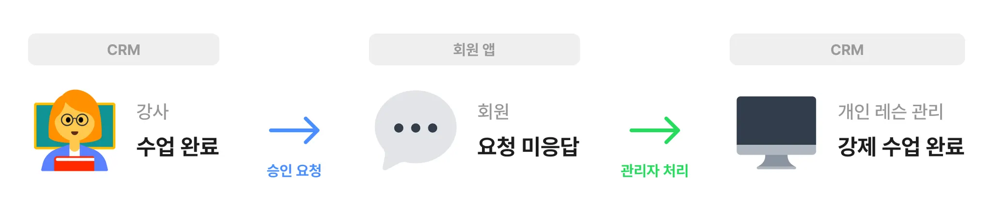 수업을 정상적으로 완료했나요? 회원에게 승인을 요청해 수업을 완료할 수 있어요.