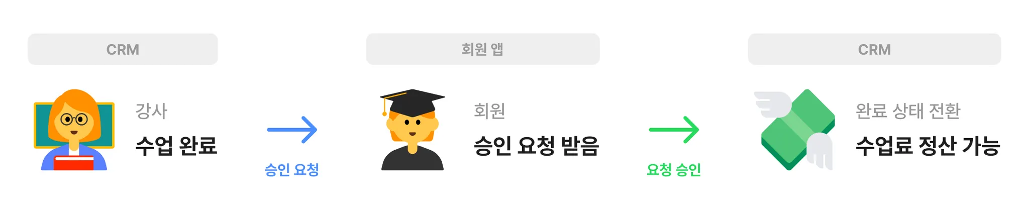 강사가 수업을 완료한 후, 회원에게 수업 완료 승인을 요청해요.