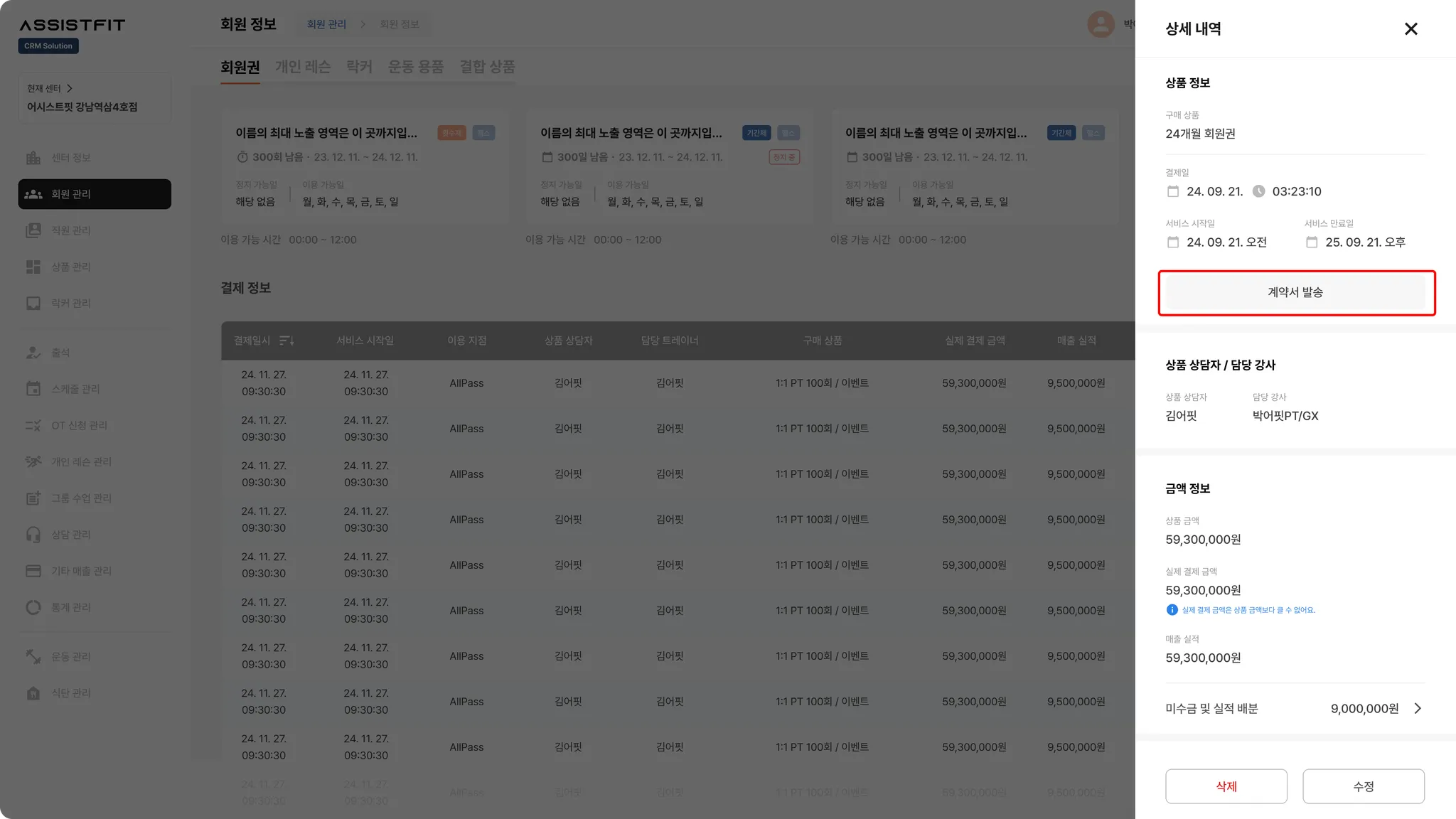 발송 후 회원이 계약서에 동의한다면 계약서 수정 및 삭제가 불가해요.