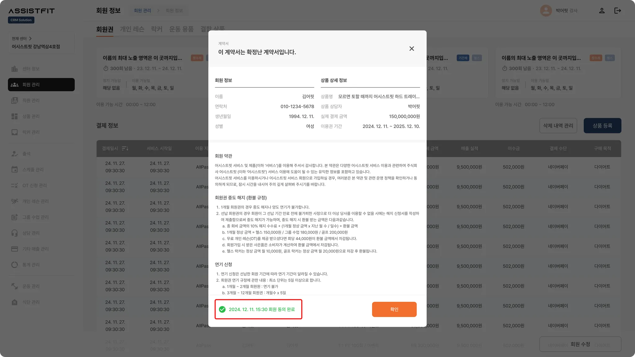 계약서 확인을 통해 회원이 언제 동의했는지 확인할 수 있어요.