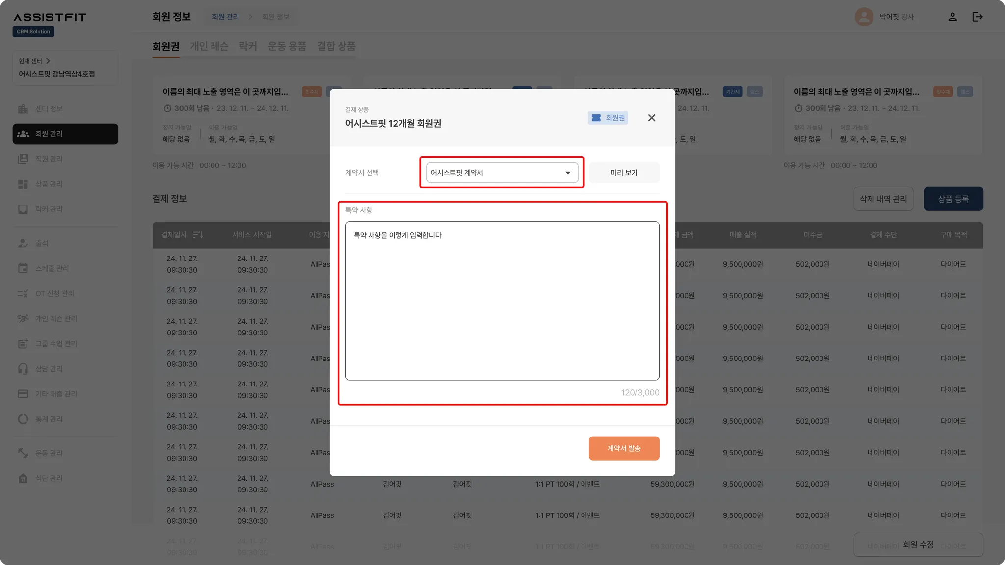 발송 후 회원이 계약서에 동의하기 전이라면 계약서 템플릿 및 특약 사항 수정이 가능해요.