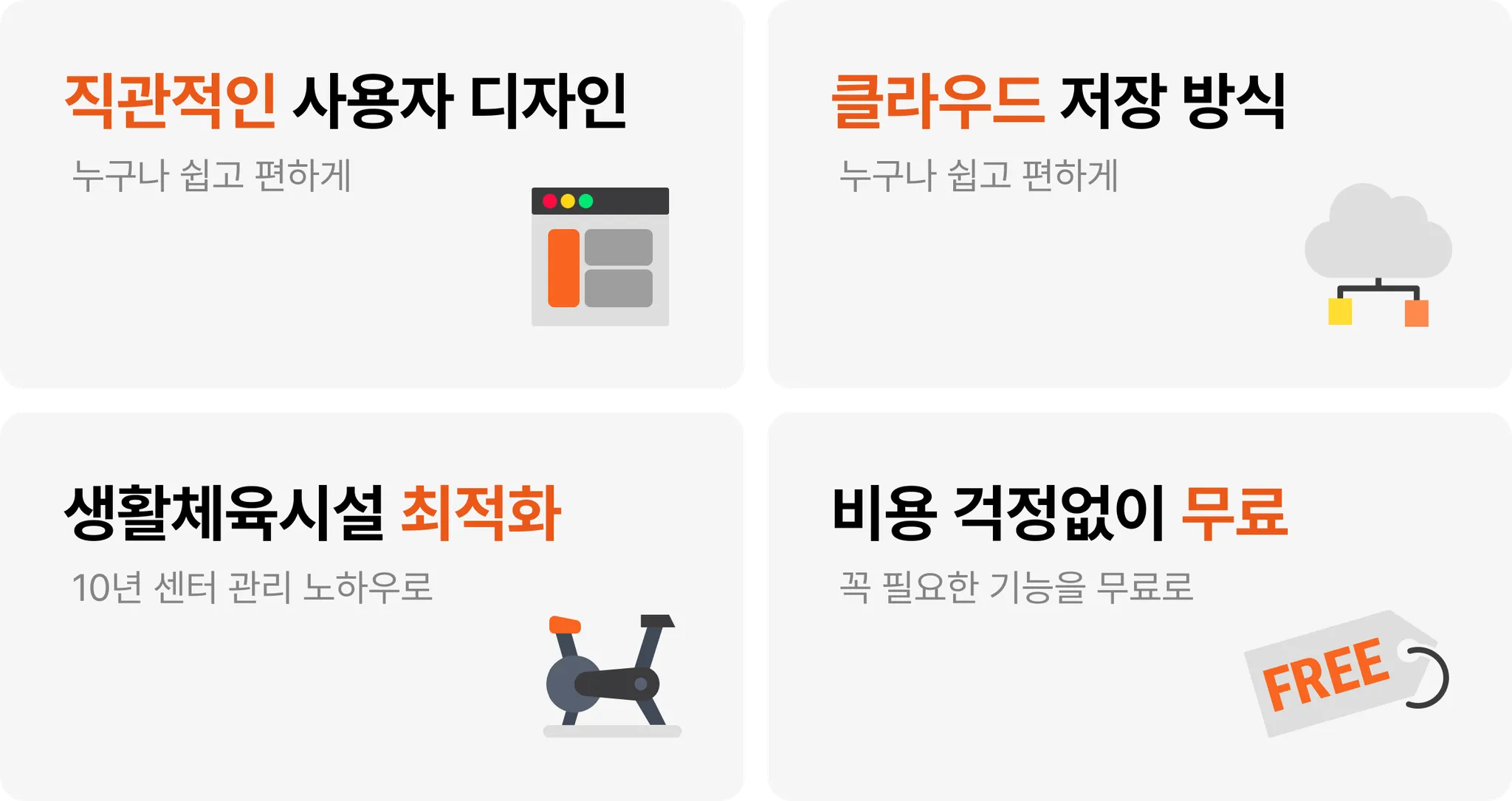10년 간 센터 관리 노하우로 다양한 생활체육시설에서 최적화되어 있어요!